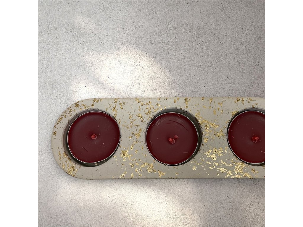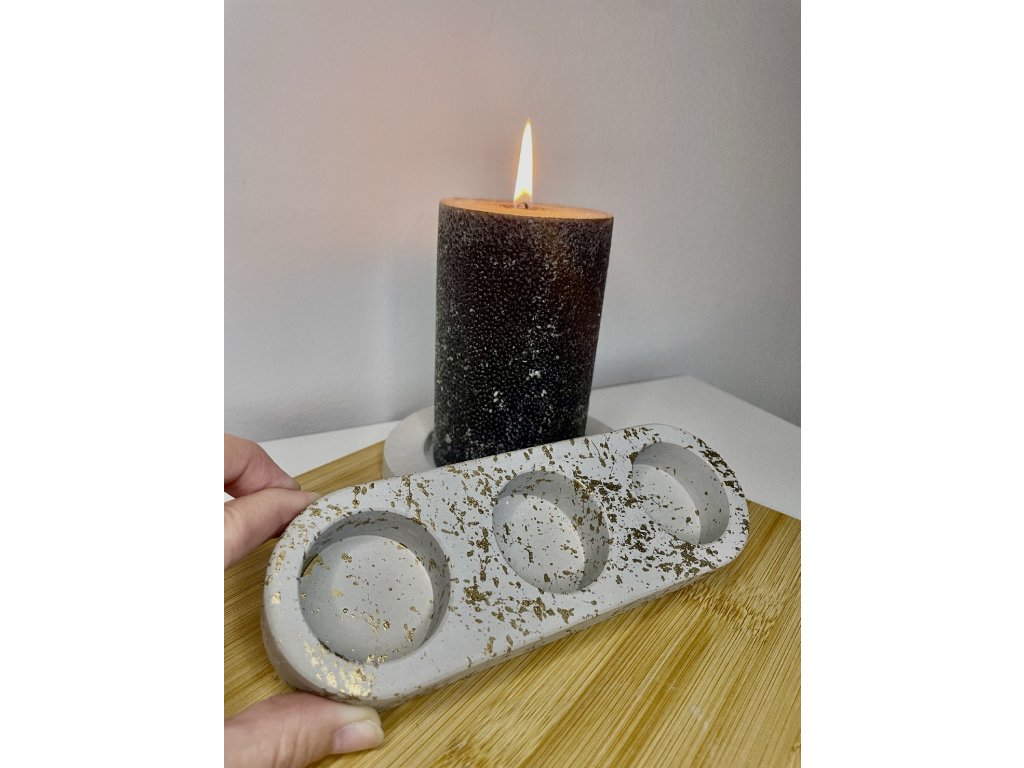 Betonový svícen se zlatým dekorem na 3 čajové svíčky