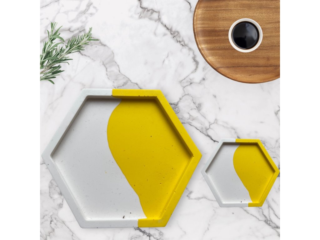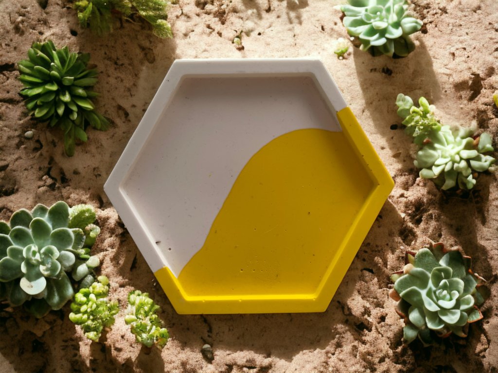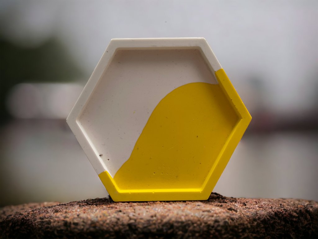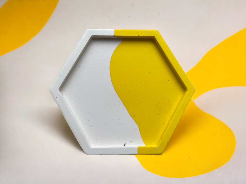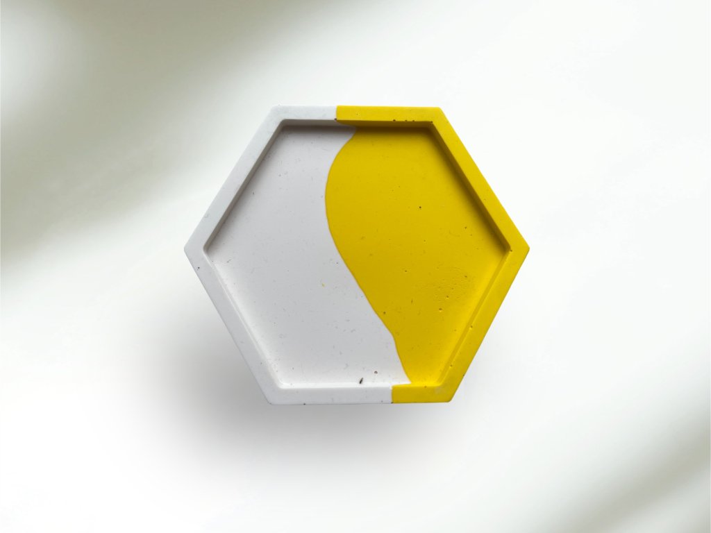 Podtácek hexagon vyrobený z Jesmonite. Ekologická a bezpečná alternativa k pryskyřici, betonu nebo sádře.
